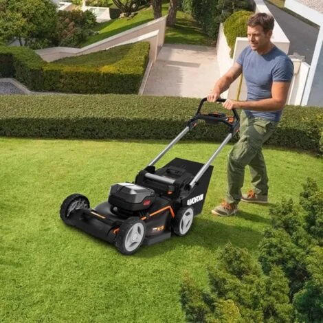 Rasaerba Nitro 40 V (2 x 20 V) Worx | PowerShare | WG749E | Include 2 batterie 4 Ah e caricatore doppio | 46 cm con trazione | Mulching | 7 posizioni di altezza