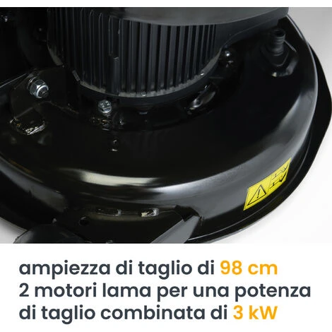 Questo trattorino STIGA è specializzato nel taglio con scarico laterale e mulching (kit mulching incluso); tagliare l’erba è sempre un piacere grazie all’ampia larghezza di taglio da 98 cm, regolabile in 7 posizioni tra 25 e 80 mm. Grazie all’innovativo raccordo al tubo di lavaggio, per la prima volta disponibile su un trattorino elettrico, consente di pulire facilmente il piatto di taglio con un tubo dell’acqua (grado di protezione IP 65)